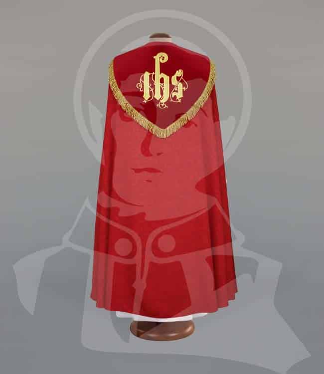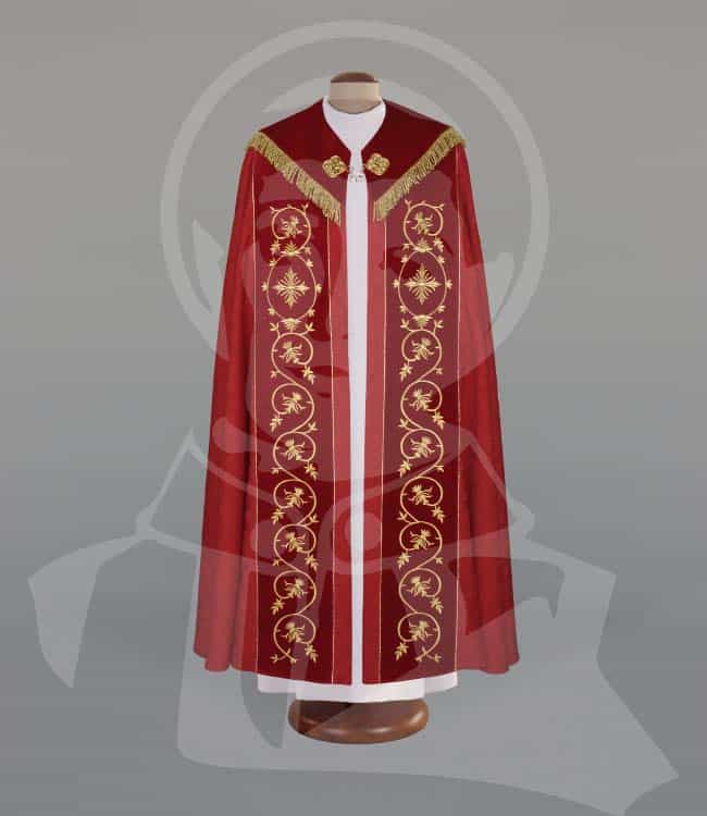 Capa de Asperges com estola em tecido damasco e tecido veludo bordado