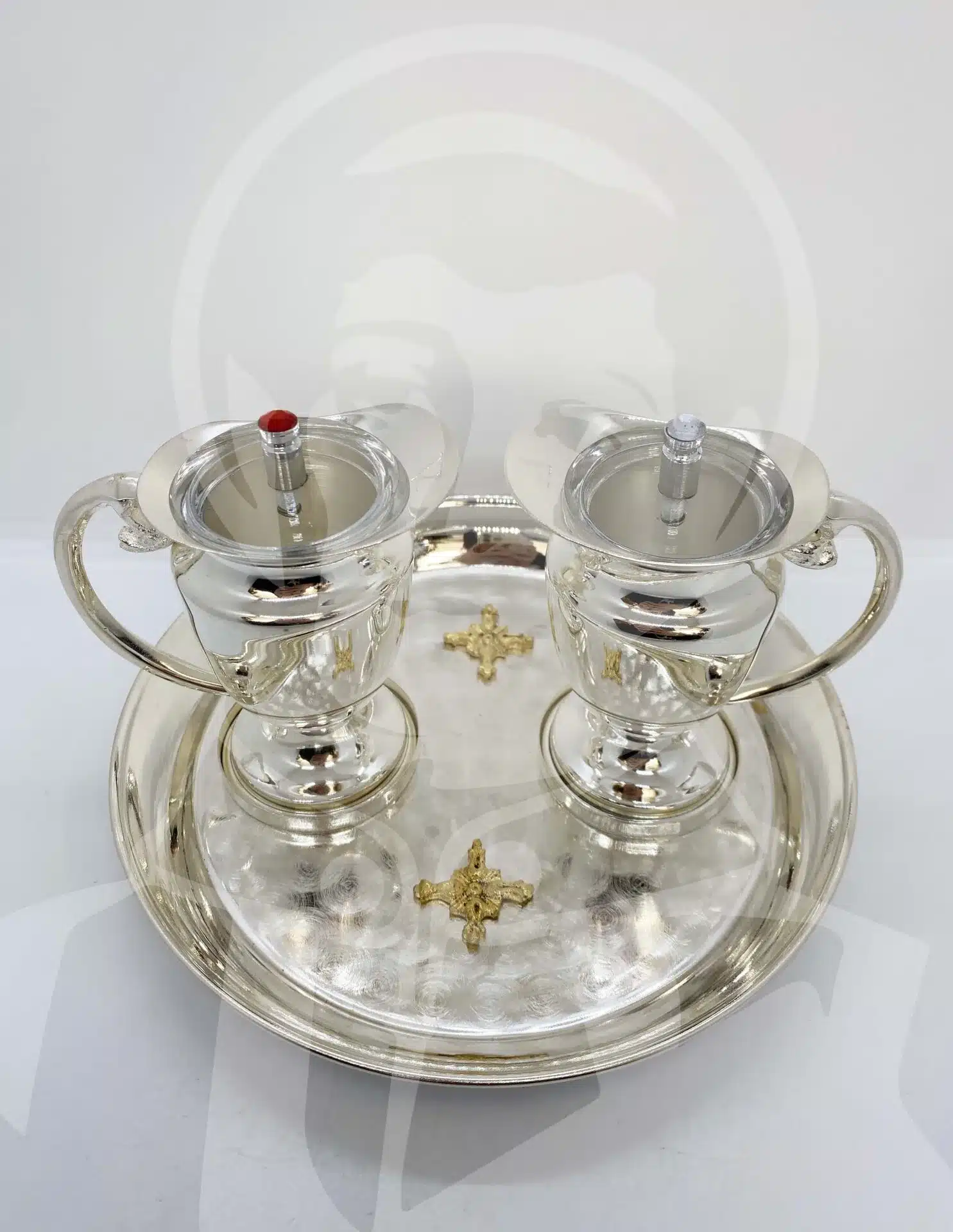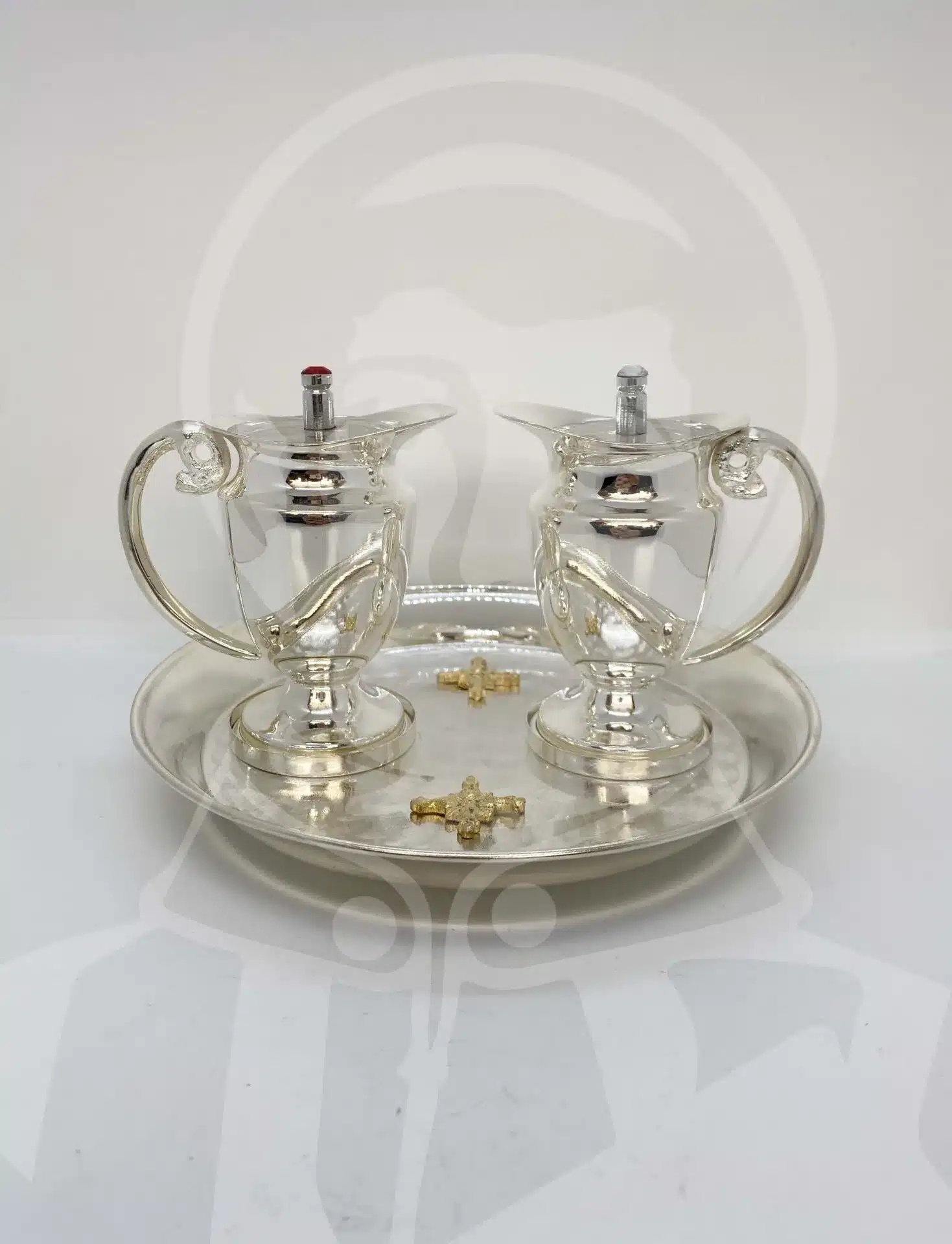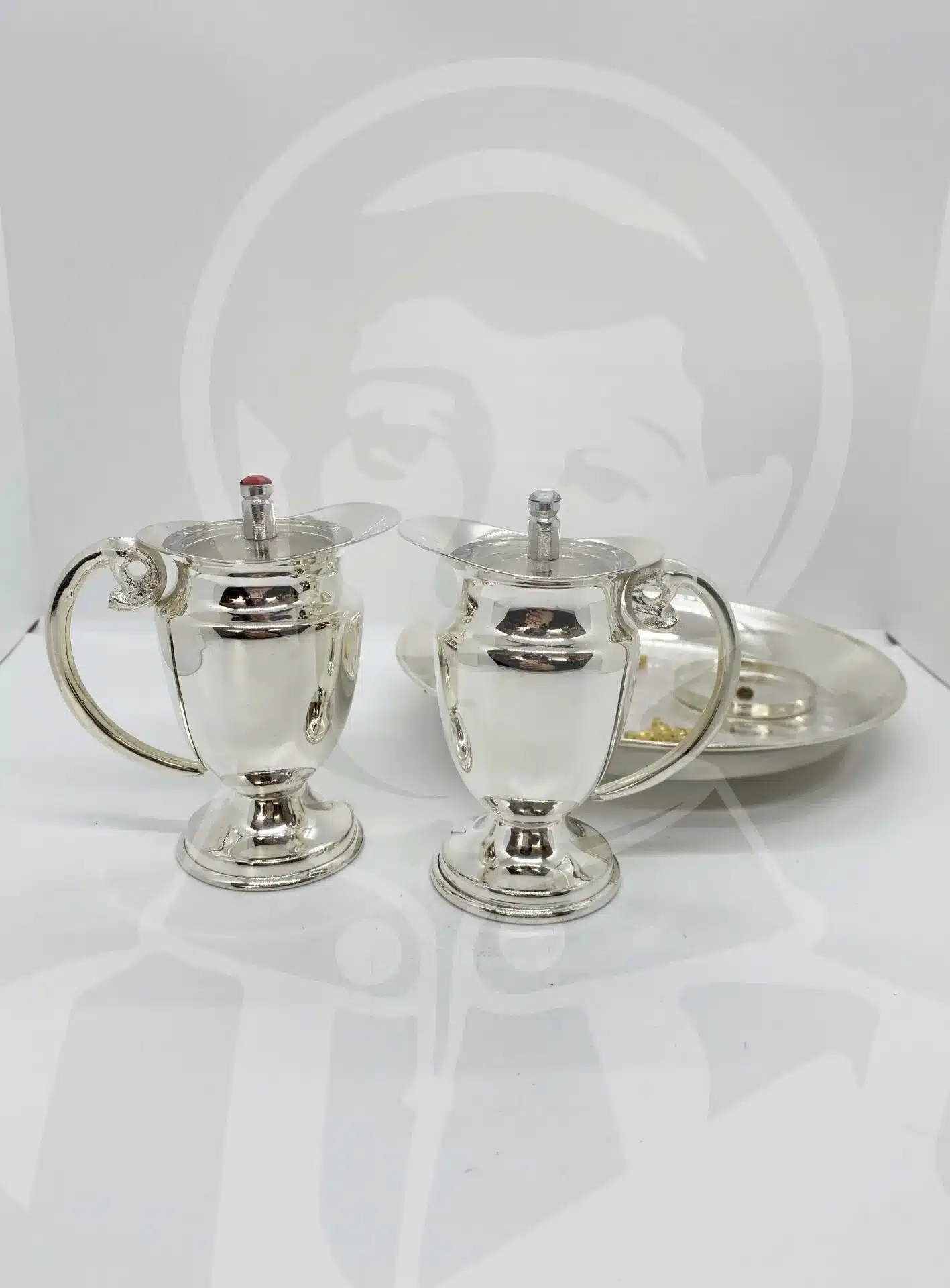 Conjunto de Galhetas com Prato Redondo e Vasos com ‘V’ e ‘A’