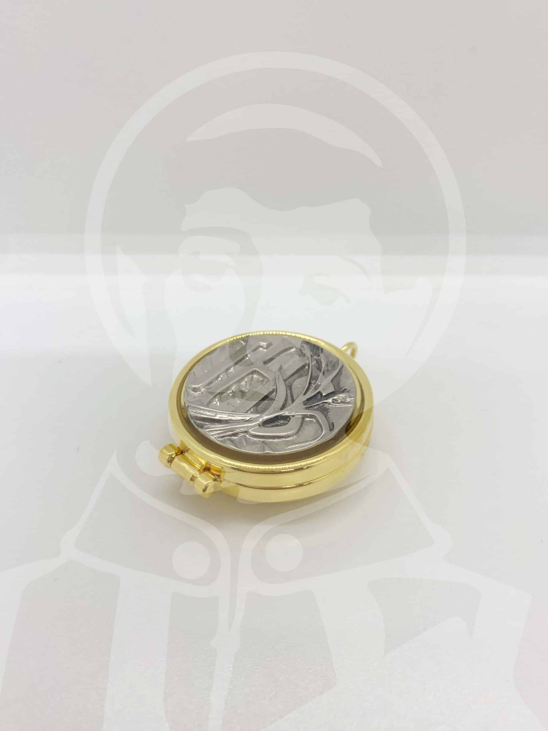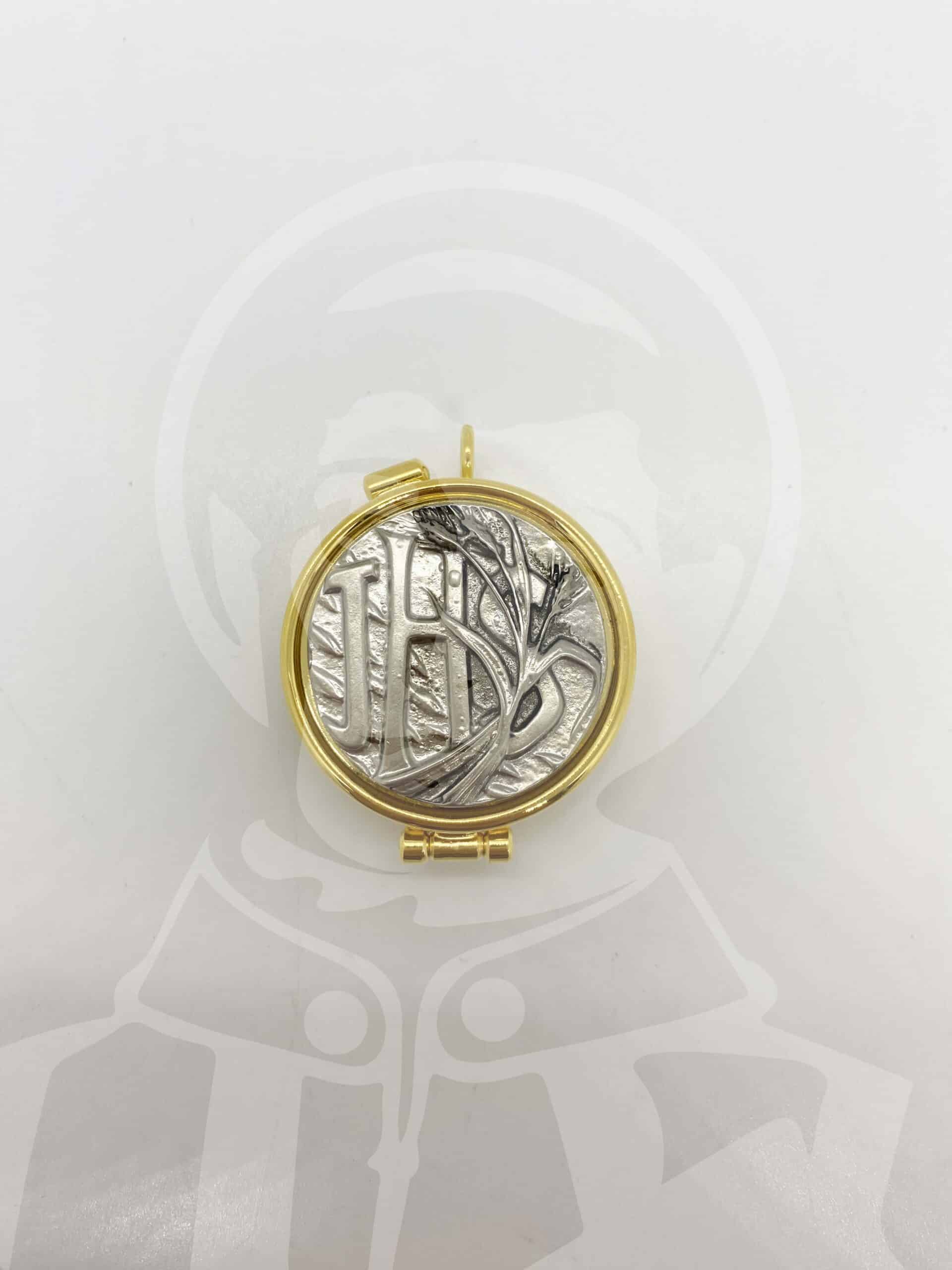 Teca com banho de ouro de 24kls e aplicação desenho JHS – pequena