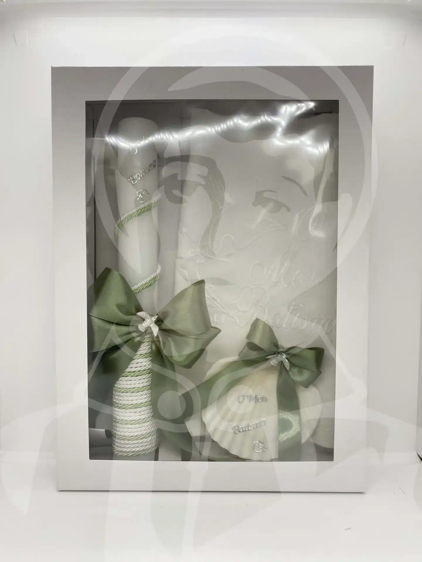 Kit de Batismo com Vela, Concha e Toalha – Verde